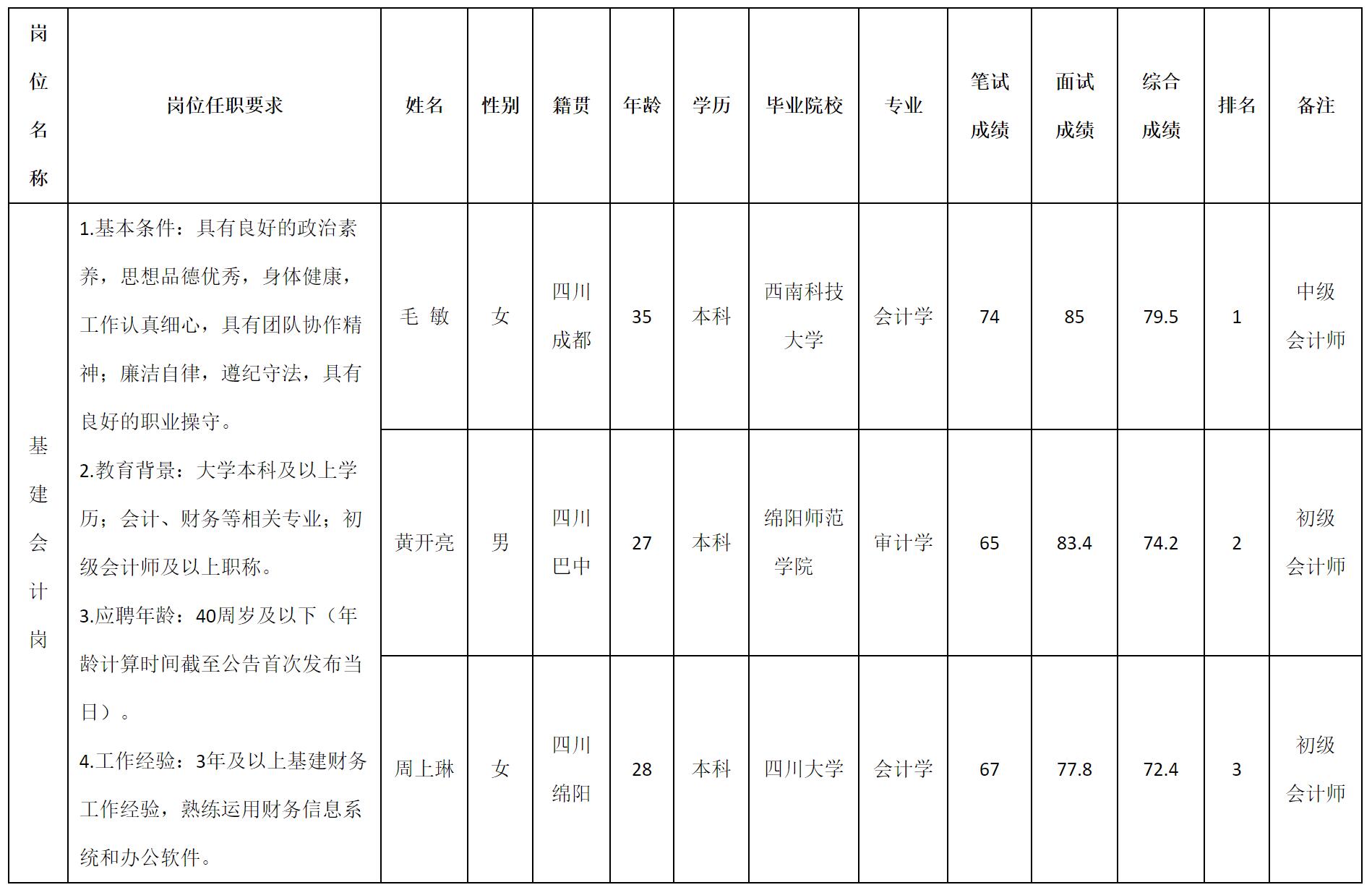 公示期為:2026年3月2日至2026年3月4日。公示期間,如有異議,請(qǐng)以電話、信函等方式向綿陽(yáng)市投資控股(集團(tuán))有限公司紀(jì)委辦公室反映。