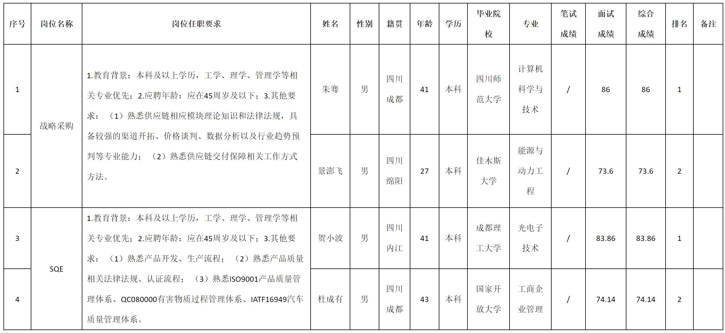 根據(jù)四川九州電子科技股份有限公司發(fā)布的招聘公告及招聘相關(guān)規(guī)定,現(xiàn)將測試成績予以公示。