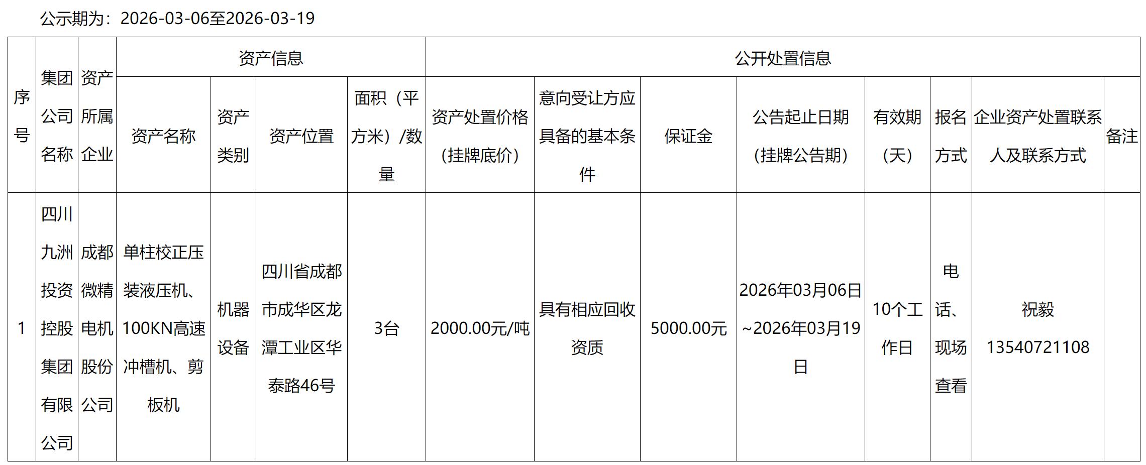 成都微精電機(jī)股份公司報(bào)廢設(shè)備處置公告