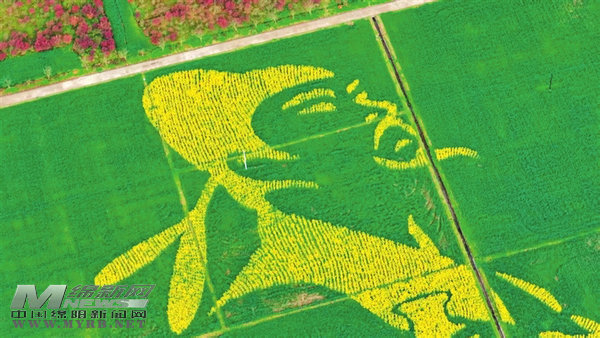 江油星火村油菜花田種出李白頭像。記者 陳元松 攝