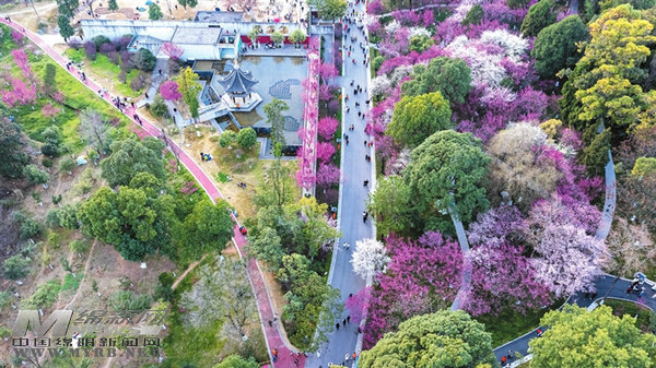 富樂山公園里游人如織,豫州園內(nèi)玉蘭在枝頭綻放,櫻花路上早櫻落英繽紛,梅花嶺上紅梅暗香浮動。富樂山公園相關(guān)負責人介紹,今春開花植物整體花期提前了約半個月,目前櫻花和玉蘭花已接近尾聲,但貼梗海棠、垂絲海棠、桃花、梨花陸續(xù)登場,春日花事將持續(xù)到4月。