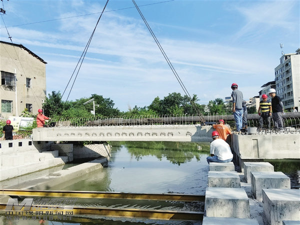 游仙區(qū)沈松路口橋二危橋改造工程正在施工。