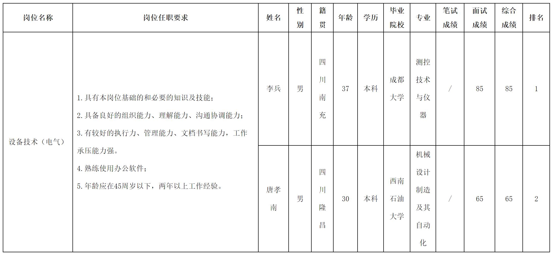根據(jù)四川長(zhǎng)虹電源股份有限公司發(fā)布的招聘公告及招聘相關(guān)規(guī)定,經(jīng)面試等程序,現(xiàn)將面試成績(jī)予以公示。