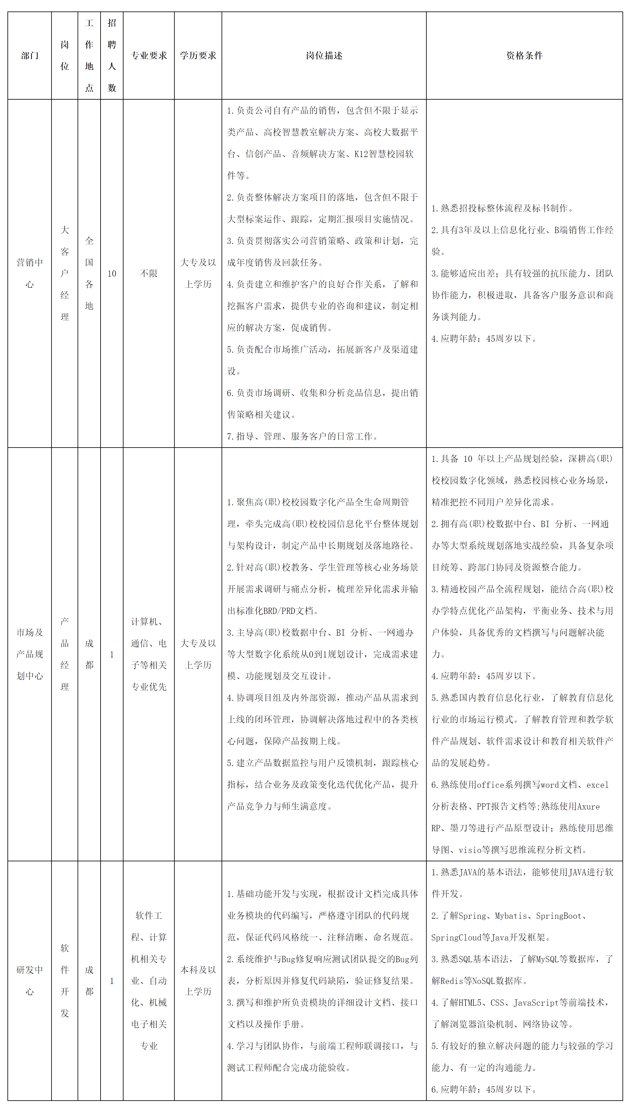 因業(yè)務發(fā)展需要,現(xiàn)誠聘英才,招聘崗位及要求如下: