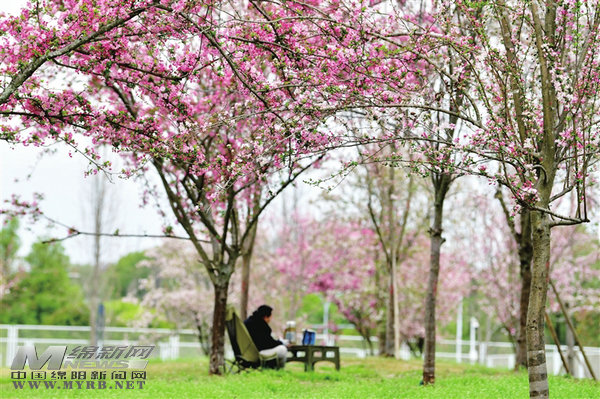 春日陽光明媚,市民在經(jīng)開區(qū)三江體育公園櫻花樹下品茶賞景。記者 王勇 攝