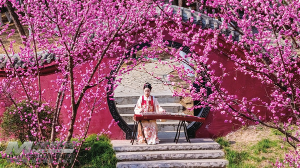 西山公園內(nèi),身著漢服的女子花下?lián)崆?,琴音與春風和鳴,奏響了滿園生機。 記者 蘭建春 攝