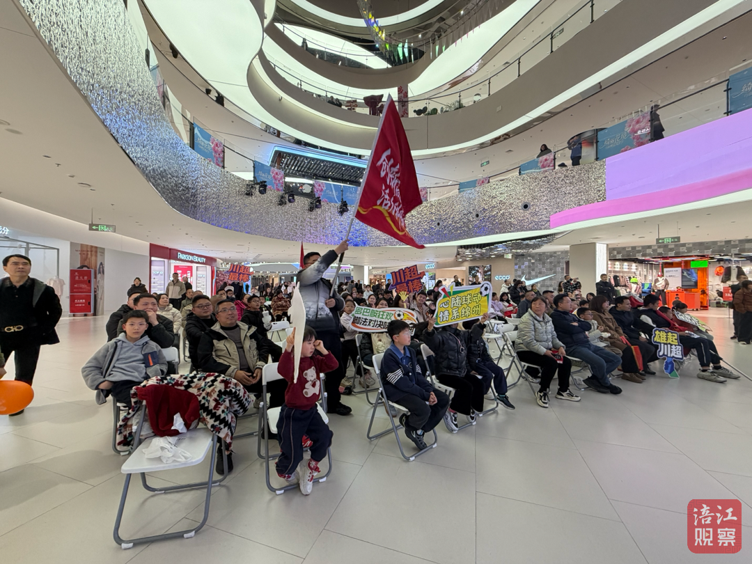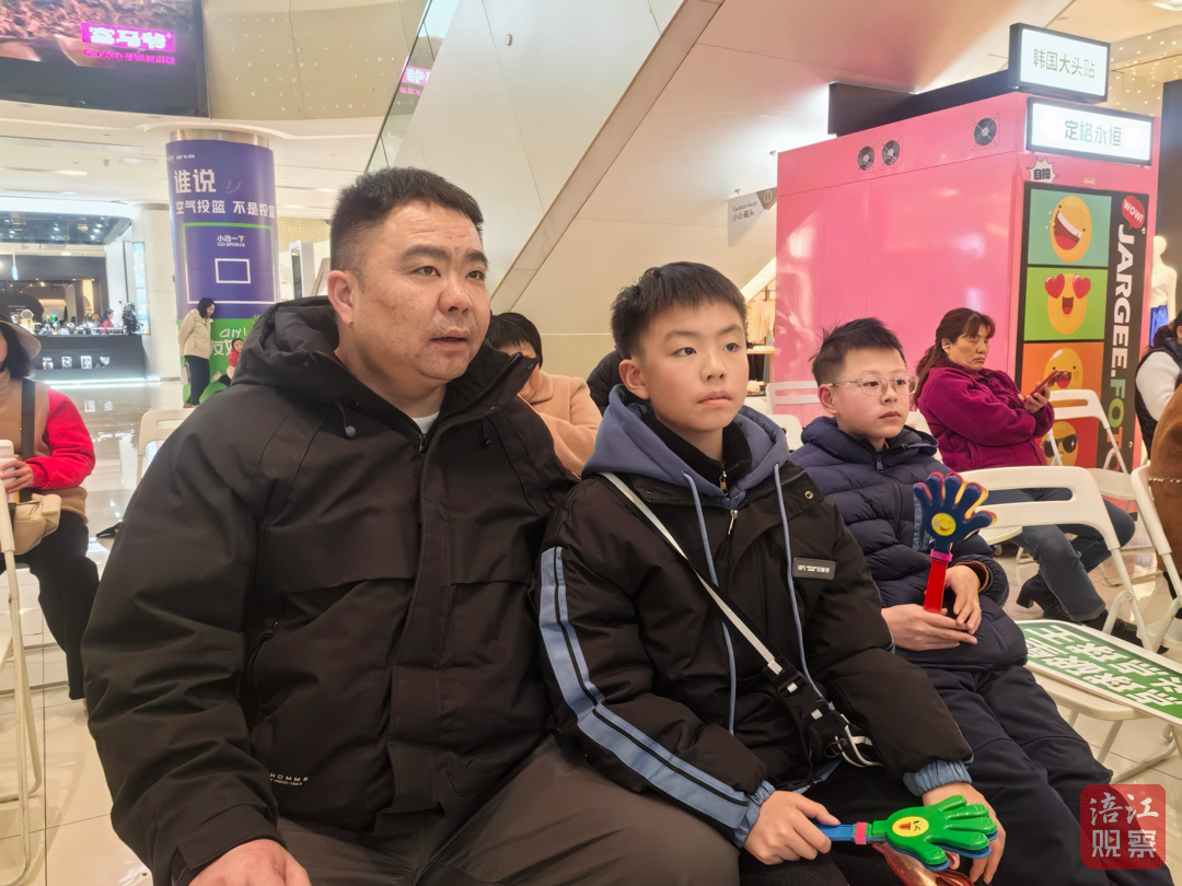 市民余貴旭告訴記者,他沒去成比賽現(xiàn)場(chǎng),趁著逛街的機(jī)會(huì),選擇和孩子在凱德廣場(chǎng)觀賽點(diǎn)收看比賽實(shí)況。
