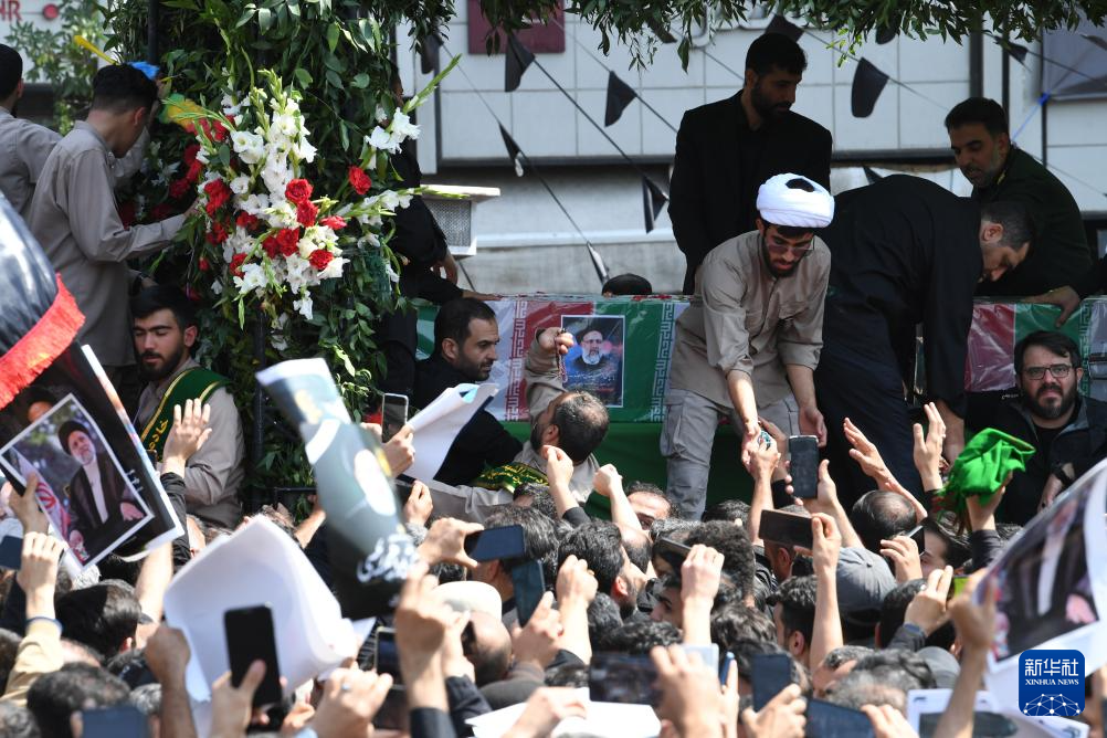 伊朗政府22日在德黑蘭為總統(tǒng)萊希、外長阿卜杜拉希揚(yáng)、東阿塞拜疆省省長拉赫馬提等直升機(jī)事故遇難人員舉行集體葬禮。[