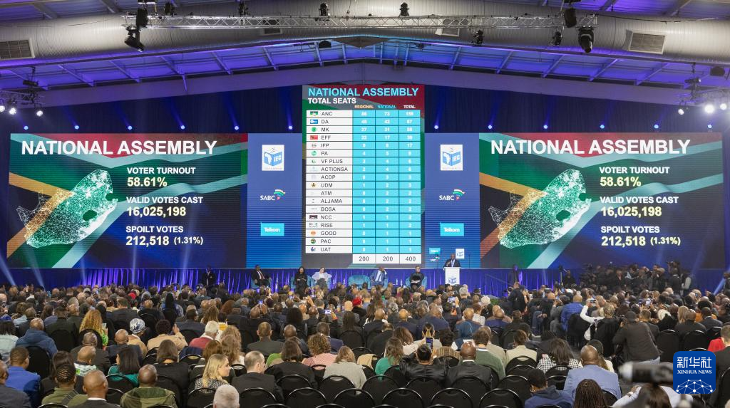 南非獨(dú)立選舉委員會2日正式公布2024年大選計票結(jié)果,執(zhí)政黨非洲人國民大會(非國大)在國民議會(議會下院)選舉中獲得400個議席中的159席,位列第一。 [