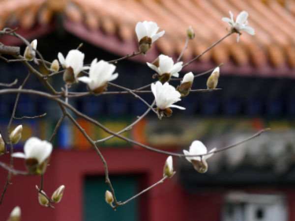 愛看綿陽丨紅墻黃瓦作襯,玉蘭花開正濃~