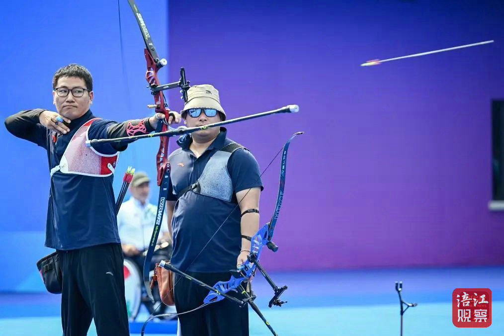 10月25日,在杭州第4屆亞殘運(yùn)會射箭項(xiàng)目男子反曲弓雙人團(tuán)體公開級金牌賽中,中國組合甘俊/趙理學(xué)獲得亞軍。[