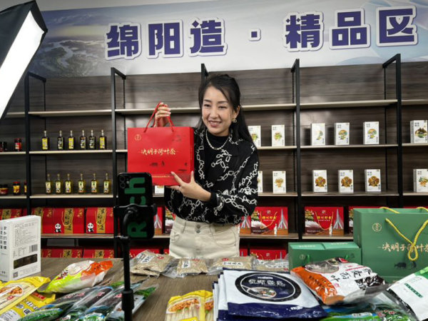 近日,記者走進(jìn)川北數(shù)字經(jīng)濟(jì)創(chuàng)新場(chǎng)景孵化應(yīng)用基地看到,仙海麻辣小魚干、綿陽米粉、報(bào)恩饗珍、綿州印象特產(chǎn)禮品盒……琳瑯滿目的“綿陽造”擺滿貨架,主播王若曦正在直播間推介“綿陽造”好物。[