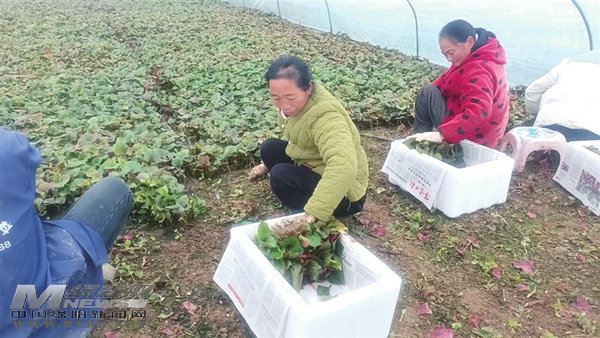 一大早,在蘇溪村田野上,一排排溫棚里人影綽綽,男男女女正忙著收割折耳根嫩苗。伴隨著“嚓嚓”的清脆聲,蔥蘢、鮮嫩的苗尖被一把把割掉,然后清除雜質(zhì),被整齊碼放于泡沫保鮮箱中。[
