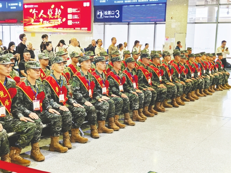 9月18日上午10時(shí),綿陽火車站候車大廳內(nèi),一首《歌唱祖國》嘹亮響起。700多名新兵從這里出發(fā),奔向軍旅新征程。[