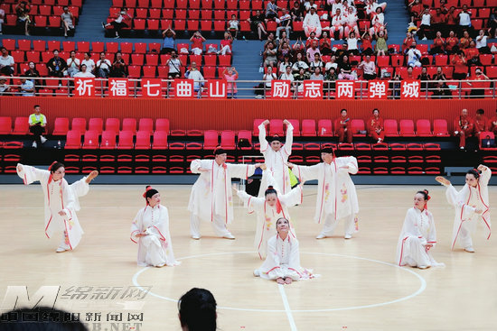 7月2日上午,綿陽市第八屆運動會老年組太極拳(劍)比賽現(xiàn)場氣氛熱烈,梓潼代表隊?wèi){借健身氣功·氣舞《七曲神韻》的精彩演繹,一舉斬獲該賽事一等獎,成功摘下市八運會首枚金牌。[