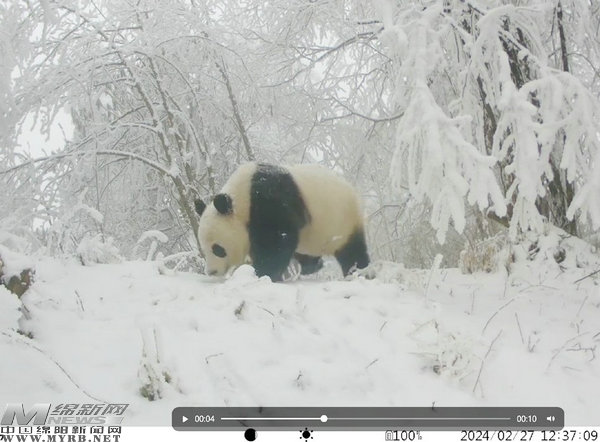 雪地里漫步、賣萌……野生大熊貓在綿又“出鏡”
