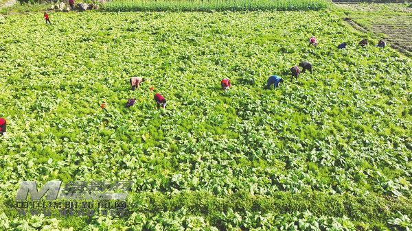 眼下,正是時令蔬菜的收獲期,在北川永昌鎮(zhèn)川主村的田壩里,大片大片的兒菜長勢喜人。采摘、分揀、裝筐……菜農們正搶抓時間砍收兒菜,為下一輪春耕春種騰出空間。[