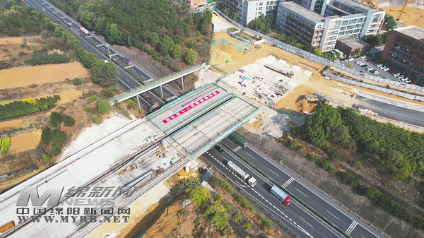 綿陽東西第二干道上跨綿廣高速大橋合龍