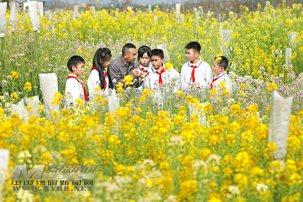3月22日,涪城區(qū)南街小學將課堂搬進田野里,在農(nóng)業(yè)專家的指導下學習五彩油菜種植方法。[