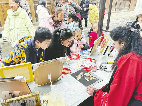 春節(jié)假期,“蜀里安逸·嗨購(gòu)三臺(tái)”迎春購(gòu)物月暨第二屆文旅嘉年華活動(dòng)在三臺(tái)縣潼川古城舉行,精彩的文藝演出、琳瑯滿目的特色產(chǎn)品吸引眾多游客?;顒?dòng)現(xiàn)場(chǎng),木雕、玉雕、布藝、剪紙、麥秸烙畫、說(shuō)唱藝術(shù)等非遺展演吸引了眾多游客圍觀“打卡”。[