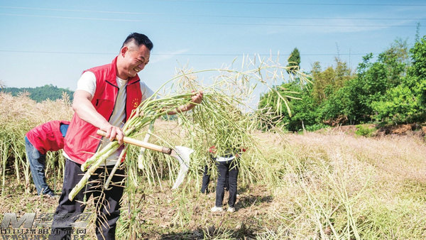 五月的仙海驕陽似火,金黃的油菜田里,沉甸甸的菜莢壓彎了枝頭,空氣中浮動著淡淡的菜籽香氣。連日來,在仙海區(qū)的田間地頭,一群佩戴黨徽、身著紅馬甲的身影格外引人注目。他們俯身勞作,鐮刀起落間,飽滿的菜籽稈整齊鋪展,與遠處的青山綠水相互映襯,構(gòu)成了一幅生機勃勃的豐.. [