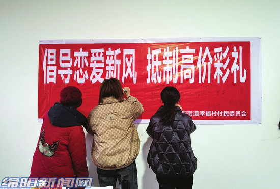 “我們倡導(dǎo)樹(shù)立正確的愛(ài)情觀、婚嫁觀,在擇偶時(shí)以人品、感情為重,把擁有一技之長(zhǎng)、勤勞能干作為主要的擇偶條件,開(kāi)創(chuàng)引領(lǐng)節(jié)儉、文明的婚嫁新風(fēng)……”日前,江油市新時(shí)代文明實(shí)踐中心聯(lián)合中壩街道辦事處,在幸福村組織開(kāi)展“倡導(dǎo)戀愛(ài)新風(fēng)抵制高價(jià)彩禮”倡議簽名活動(dòng),吸引當(dāng)?shù)?. [