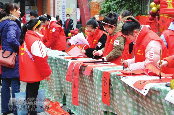 “愛(ài)心不分大小,只要您獻(xiàn)出愛(ài)心,就可以挑選一副心儀的春聯(lián)帶回家!”1月19日,在涪城區(qū)南河路,一群紅領(lǐng)巾志愿者正在寫(xiě)春聯(lián)義賣(mài)(如圖),用義賣(mài)的愛(ài)心款購(gòu)買(mǎi)生活用品,捐贈(zèng)給社區(qū)老人。 [