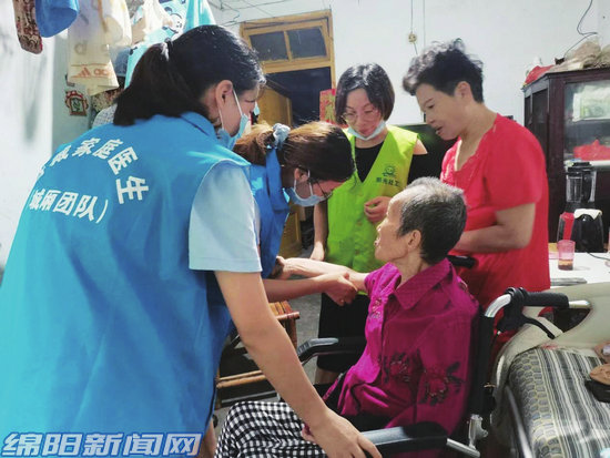 近日,江油市老年病醫(yī)院的護(hù)士馬明會(huì)又來(lái)到居民巴征馨老人家中,為老人提供測(cè)量血壓、做康復(fù)針灸推拿等志愿服務(wù)。 [