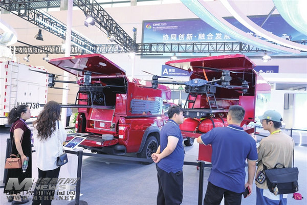 在科博會A館,一款由皮卡車裝載的高層快反滅火無人機系統(tǒng)吸引了眾多目光。 [